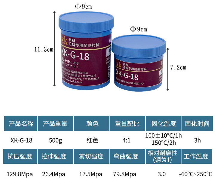XK耐磨顆粒膠是一種由高分子聚合物與剛玉、碳化硅等多種復(fù)合超微粉填料和化學(xué)添加劑配制而成的雙組份耐磨顆粒膠材料,洛陽融基工貿(mào)有限公司在研制和生產(chǎn)中不斷革新,加入一種高效促進(jìn)劑,使環(huán)氧得以改性,粘接強度大為提高,固化速度加快,促使膠泥稠化,可涂抹于垂直工作面上不流淌、無污染。