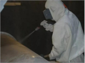 嚴(yán)格按照膠粘劑配比進(jìn)行混合攪拌,攪拌完成后的膠粘劑盛在料盤中對預(yù)熱完成的工件進(jìn)行施膠,混合后的膠粘劑在料盤中停留時間不能超過3分鐘,以保證膠粘劑對工件的充分粘合。施工完成后,對檢查出的缺陷進(jìn)行及時修補(bǔ)。