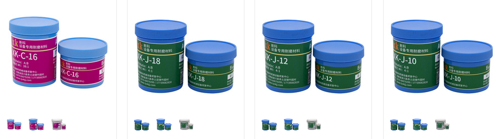 1.先預(yù)熱已噴砂的設(shè)備,將xk-J-12耐高溫耐磨顆粒膠按A:B(重量)4:1比例混合攪拌均勻,用加熱后涂覆工具將混合后的修復(fù)材料涂覆于進(jìn)料口的部位